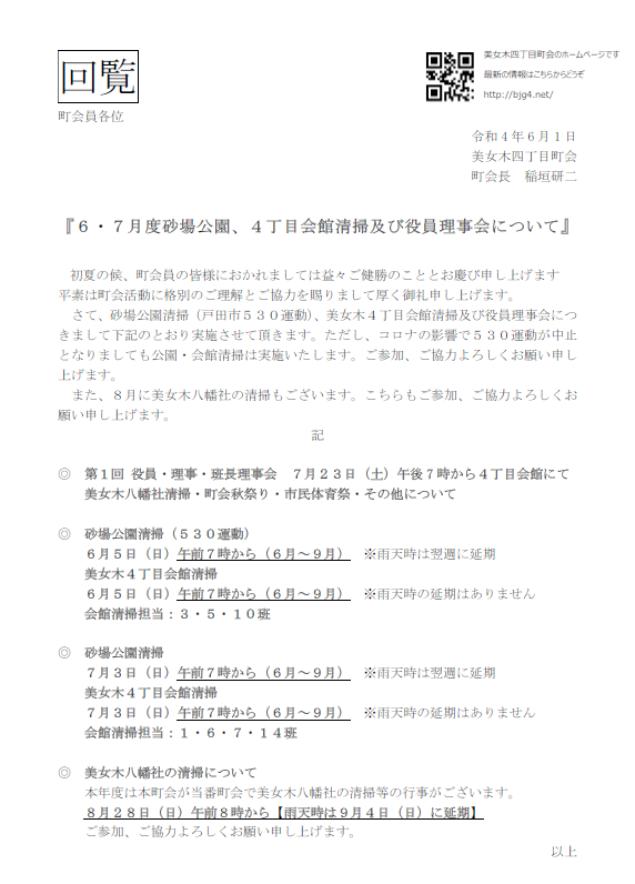 表題の件、6月度回覧を掲載します。